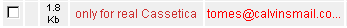 Cassetica..I got a mail from Harry Potter this morning offering me "frank photos of 5-10 y.o. girls". Strange? No, just another mail to the address that Cassetica let slip last week. I was hoping it would be a one off but it now looks like I'm in the spiral that will mean more and more mail like this. Thanks Cassetica! Well, if I have to pay a price every time the address is used, so will you. Every time they spam me I will give you bad-press. Oh, and I'll forward you the mail for your reference. I'm now awaiting the ultimate irony when you decide that you will sue me for what you have done to me. As of today, I am number ten of a Google search for Cassetica. Be warned ;o)