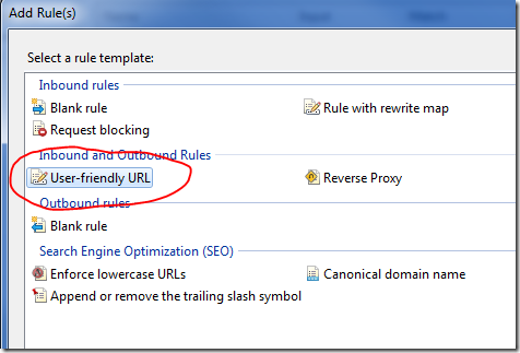 You also get the option to have IIS rewrite out-going HTML to make sure all internal links point to this new friendly format. I left this un-ticked though and just made sure I stuck to the new convention when building my pages.