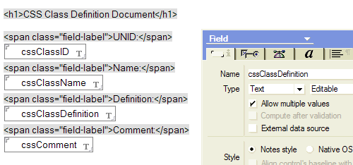 Obviously, there are a few more fields on the form but we only need to worry about these two. Using them, we can create a fairly simple Notes View that will display all our Style Documents as one CSS "file".